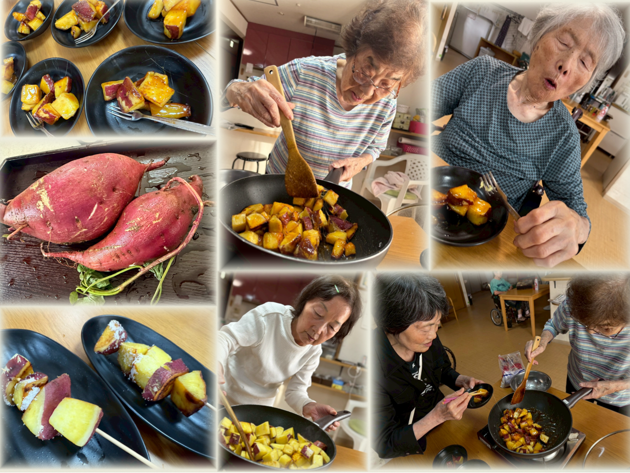 お庭で収穫したサツマイモで大学芋を作りました。(福田の郷)