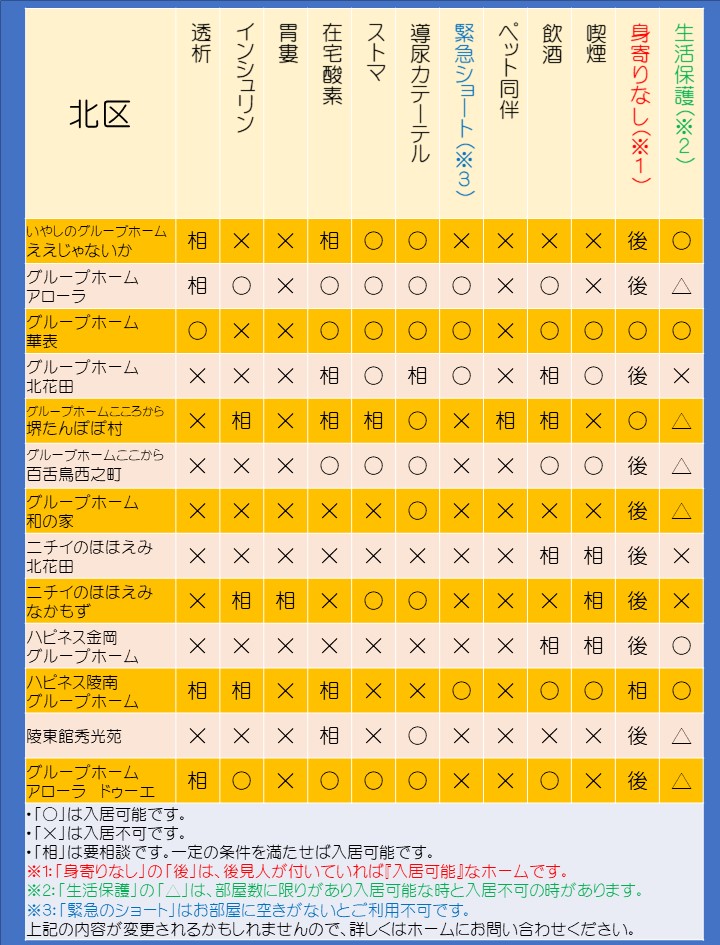 (北区)の下に『LINE!』とあるホームにご連絡いただくと、その利用者様の受け入れ可能なグループホームを探してくれます。